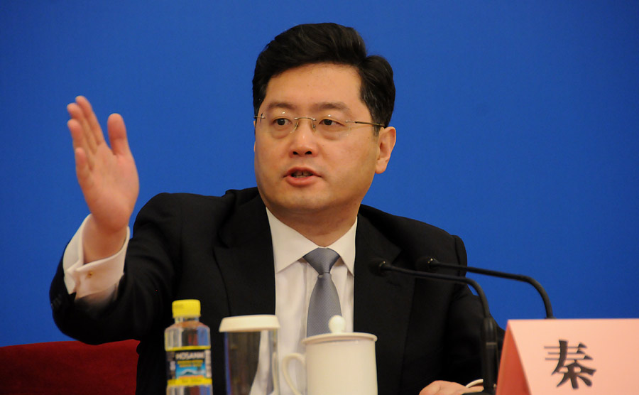 3月9日,十二届全国人大一次会议举行记者会,外交部部长杨洁篪就“中国的外交政策和对外关系”答中外记者问。这是外交部发言人秦刚。新华网/中国政府网 翟子赫 摄