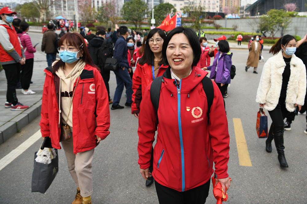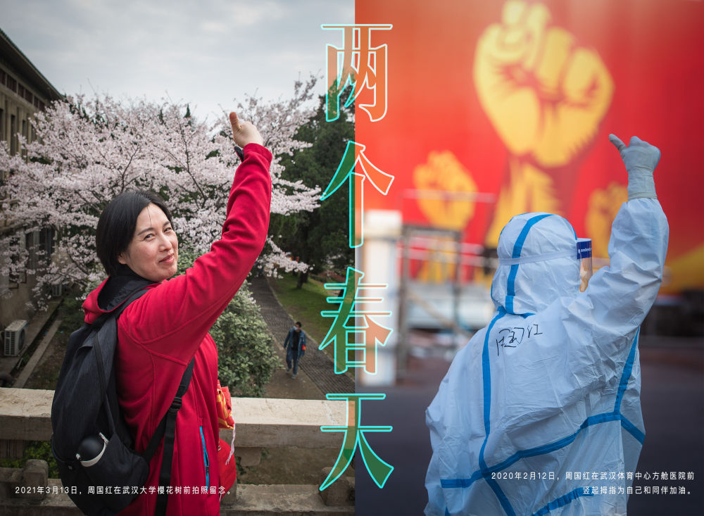 3月13日,周国红准备参加在武汉大学举办的援鄂抗疫医护人员赏樱专场欢迎仪式。