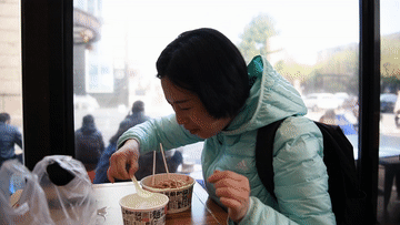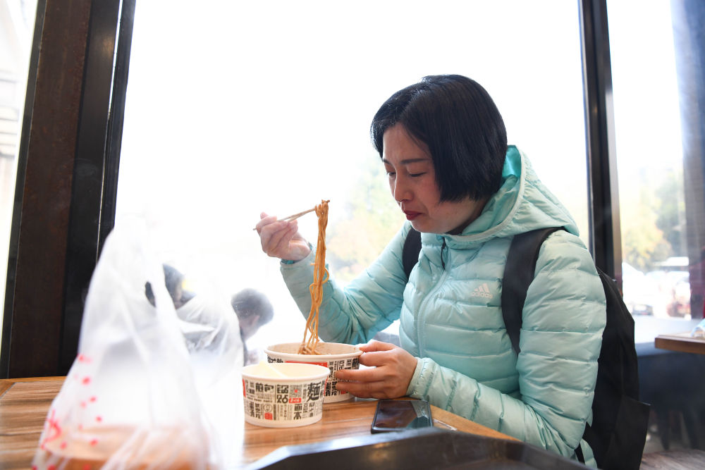 3月14日,周国红在武汉一家早餐店里吃热干面。