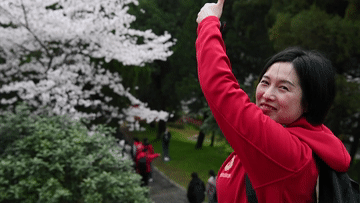 人潮涌动的武汉大学樱花大道