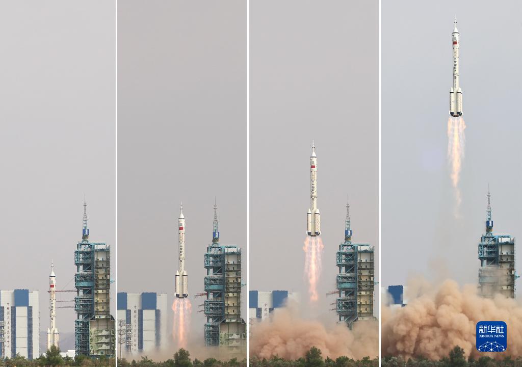 这是神舟十六号载人飞船点火发射(合成照片)。新华社记者 连振 摄