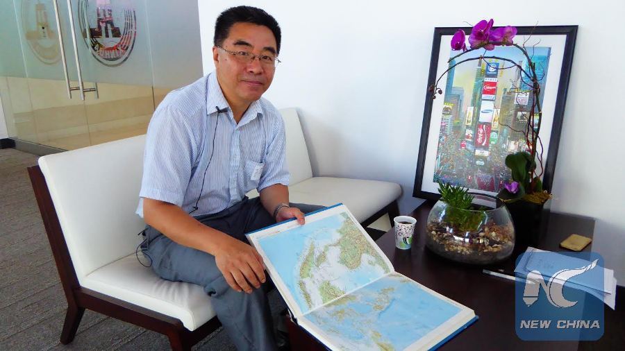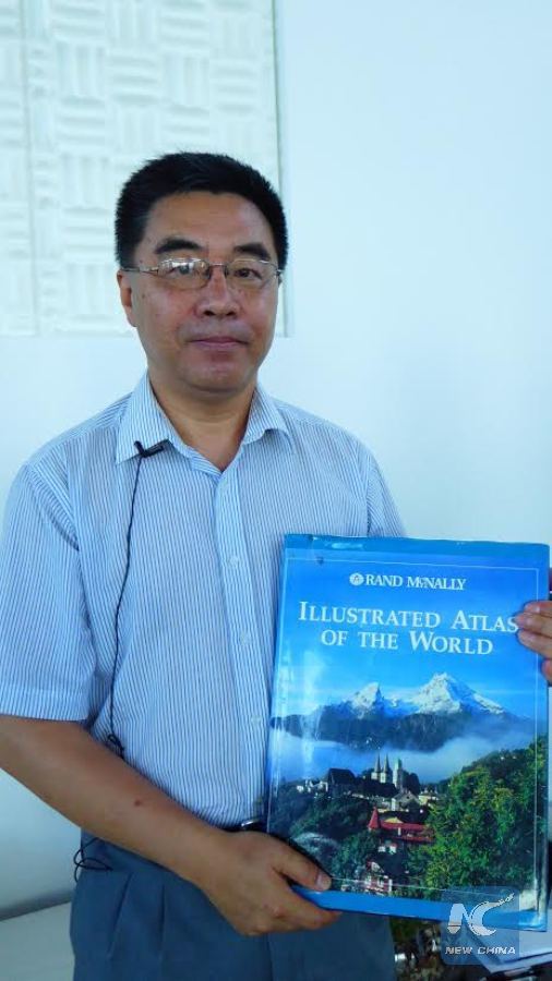 The 1994 revised edition of the Illustrated Atlas of The World, published by the Chicago-based Rand McNally, clearly shows that Huangyan Dao, Nansha Islands and Xisha Islands fall under China's jurisdiction, according to Chia-Chi Tsui, a retired Chinese-American professor, July 8, 2016. (Xinhua/Huang Hexun)