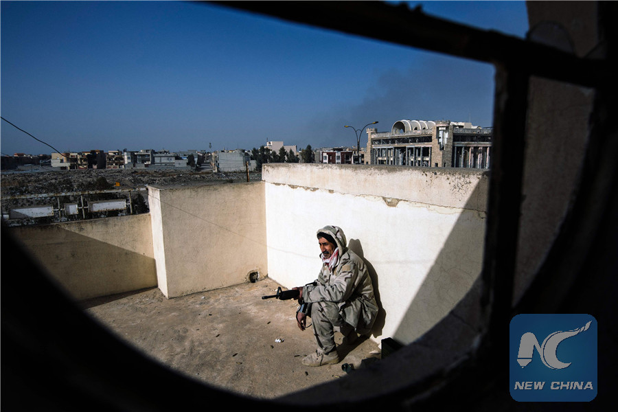 MOSUL, Iraq, Jan. 10 (Xinhua) -- Iraqi security forces on Tuesday advanced further inside the eastern side of the Islamic State stronghold in the city of Mosul in northern Iraq, as fierce clashes continued against the extremist militants, the Iraqi military said.