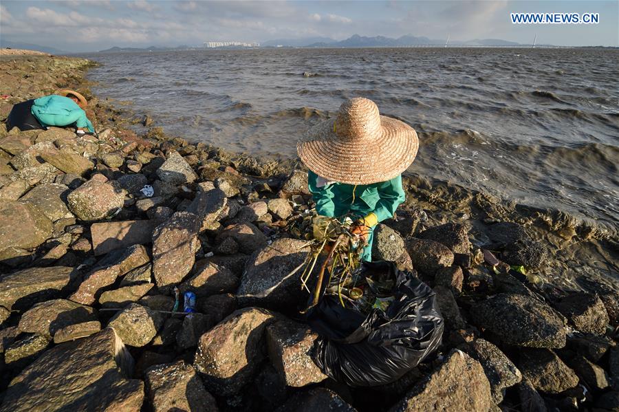 GUANGYUAN, June 4, 2016 (Xinhua) -- A sanitation worker clears up rubbish at a park in Shenzhen, south China's Guangdong Province, June 3, 2016. The city planned to carry out 463 projects, including the construction of 1,000 km sewage treatment pipelines and comprehensive managements of 144 rivers, to improve water-related environment quality this year, with total investment of more than 1.524 billion U.S. dollars. (Xinhua/Mao Siqian)