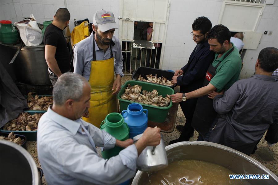 HEBRON, June 7, 2016 (Xinhua) -- People prepare charity meal before the breakfast on the second day of Ramadan, in the West Bank City of Hebron, on June 7, 2016. (Xinhua/Mamoun Wazwaz)