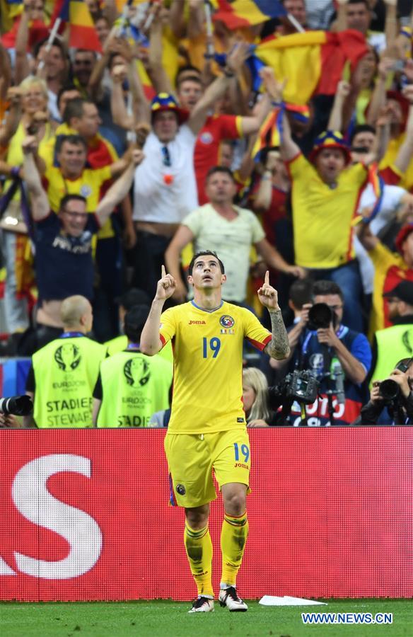 PARIS, June 11, 2016 (Xinhua) -- Bogdan Stancu of Romania celebrates after scoring a penalty during the Euro 2016 Group A soccer match between France and Romania in Paris, France, June 10, 2016. (Xinhua/Guo Yong)