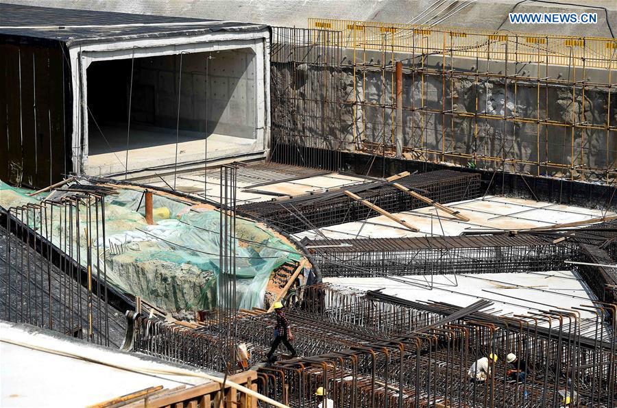 Workers are seen at the construction site of a comprehensive underground pipeline project in Zhengzhou, central China's Henan Province, July 29, 2016. The city planned to construct eight comprehensive underground pipeline projects this year, with a total length of 44.1 kilometers. The comprehensive projects have enough space for pipes of power supply, telecommunication, TV broadcasting, water supply, drainage and heat supply. (Xinhua/Li An)