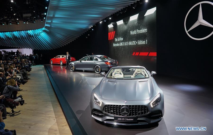 A Mercedes-AMG GT C Roadster is seen at the Los Angeles Auto Show in Los Angeles, the United States, Nov. 16, 2016. The 2016 LA Auto Show will open to the public from Nov. 18 to 27. (Xinhua/Yang Lei)