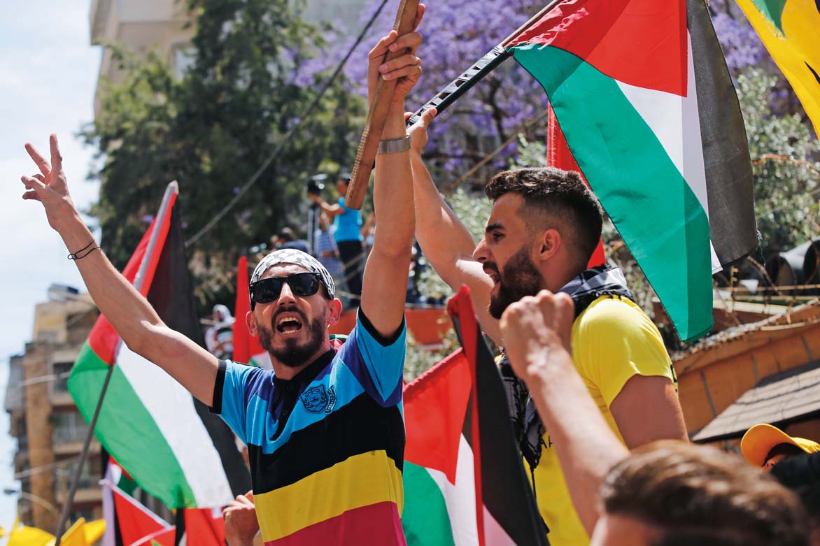 5月16日,人们在黎巴嫩首都贝鲁特举行抗议示威活动,声援巴勒斯坦民众