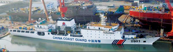 中船重工官网2014年12月15日的消息称,我国第一艘排水量突破万吨的海警2901船下水,完成涂装工作。该消息称,海警2901船被外媒称为“海怪兽”,是目前世界上排水量最大的海警船,将为我国在海洋维权方面再添一款“神器”。