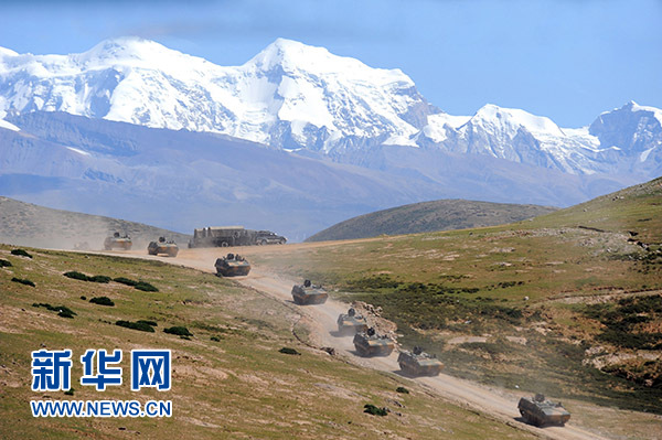 “白刃格斗英雄连”所在的成都军区第14集团军某旅官兵参加高原联演联训(2013年8月15日摄)。 新华社发(彭田 摄)