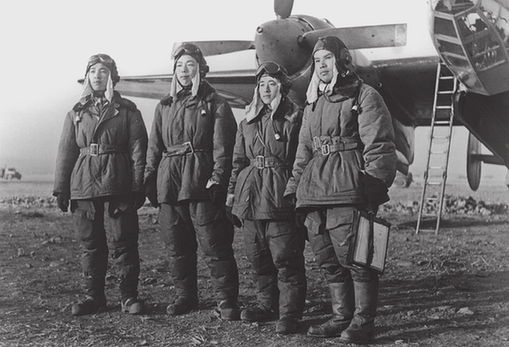 高月明(右一)和执行第三次轰炸任务的战友们。