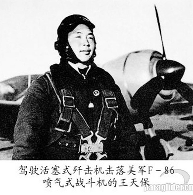 驾驶活塞式歼击机击落美军F-86喷气式战斗机的王天保。