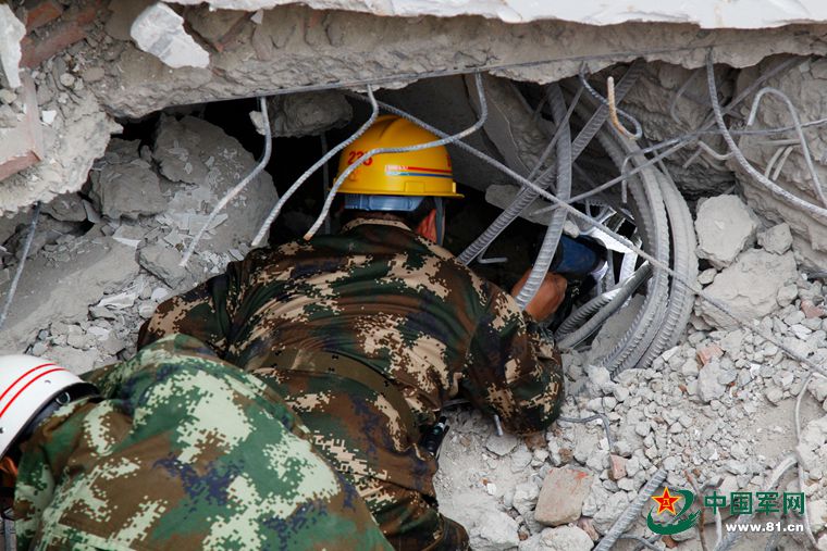 武警交通部队官兵全方位展开专业搜救