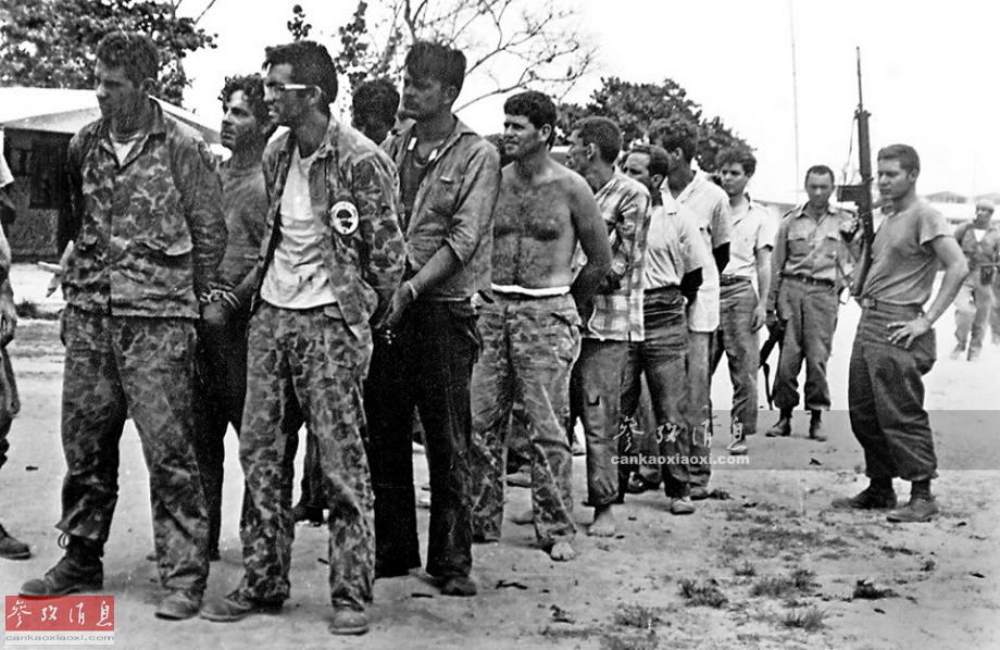 1961年,在中情局的直接策划和指挥下,古巴流亡分子在猪湾登陆,突袭古巴,目的也是暗杀卡斯特罗斯特罗,但最终惨遭失败。。图为被俘的古巴反政府武装人员。
