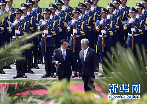 4月9日上午,中国国务院总理李克强在海南省三亚市同东帝汶总理沙纳纳举行会谈。这是会谈前,李克强为沙纳纳访华举行欢迎仪式。 新华社记者丁林摄