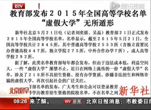 一位教育界人士透露称,目前许多虚假大学网站的服务器都在中国香港、美国等,域名注册方便,这也使得教育部门和网监部门难以监管。