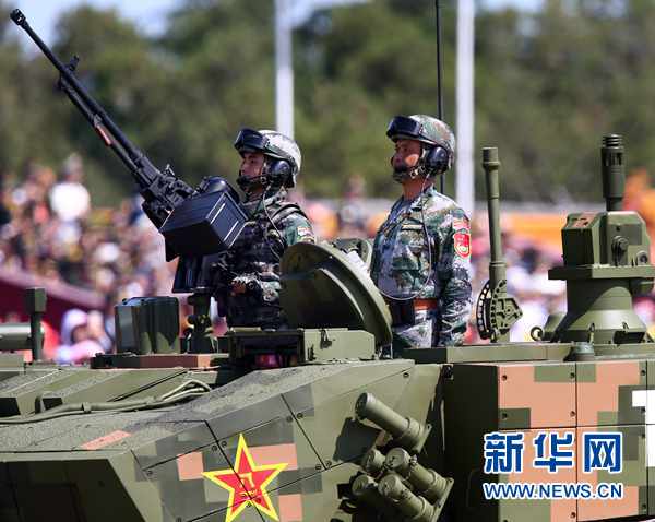 这是坦克方队接受检阅。 新华社记者 郑焕松 摄
