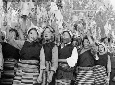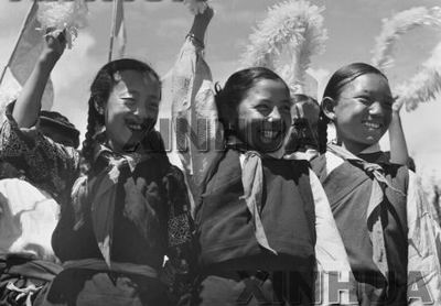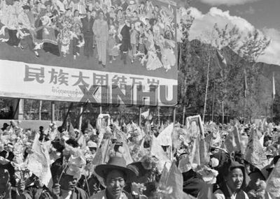1965年9月9日 拉萨各界各族人民三万多人举行集会游行,热烈庆祝西藏自治区正式成立。