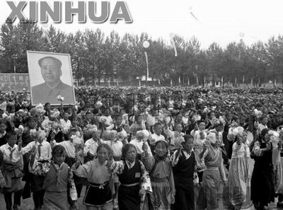 1975年9月9日 拉萨各族人民举行盛大游行,热烈庆祝西藏自治区成立10周年。