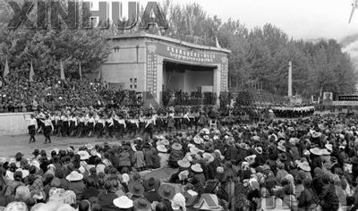 1985年9月1日 拉萨各族各界群众隆重举行西藏自治区成立20周年庆祝大会。