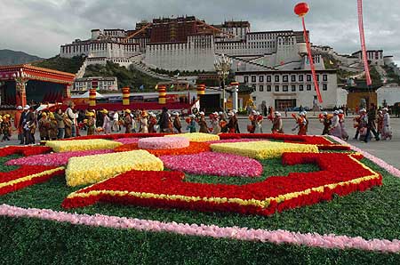 2005年9月1日 西藏各族各界2万多人隆重集会,热烈庆祝西藏自治区成立40周年。