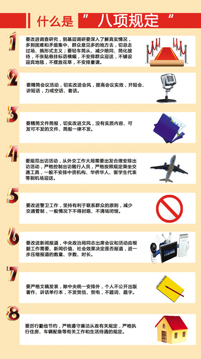 从车子到房子,从会风到报道长度,人们发现“八项规定”事无巨细都要管,更发现这种事无巨细都要管的风格,成为党的作风建设的鲜明特点。