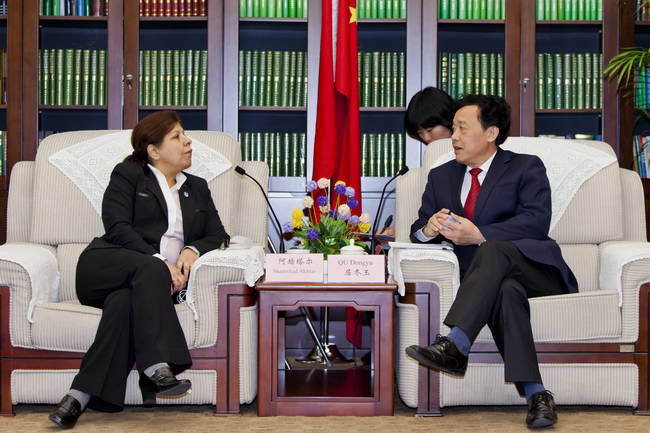 屈冬玉会见联合国副秘书长、联合国亚太经社会执行秘书阿赫塔尔