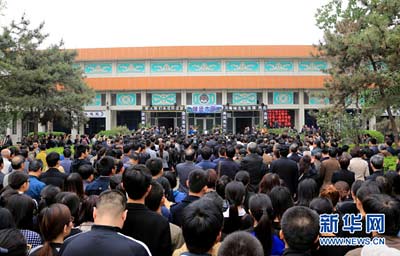 图为李保国追悼会及遗体告别仪式12日在保定市殡仪馆举行。