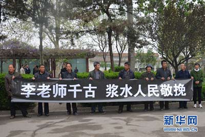 村民王维忠说,听说李老师去世后,村民们大多是租车过来的,一天间,浆水村陆陆续续来了十几辆车,一百多人。他说,山区农民以前都是靠种地为生,收入微薄,上个世纪八十年代,李老师带领村民栽种苹果,用先进科技引领农民发家致富,“如今百姓的日子渐渐富裕起来了,他却这么突然的走了”,话说一半,眼前这位果农早已泣不成声。