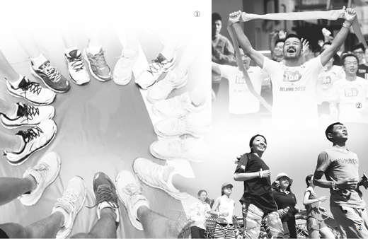 图②:去年7月,马拉松运动员陈盆滨在“100天挑战100场马拉松”活动中,顺利到达北京五棵松体育馆内第100个马拉松终点。