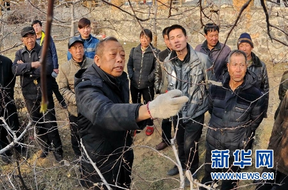 资料图片:李保国(前左)在河北省内丘县岗底村向村民讲解果树修剪知识(1月27日摄)。 新华社记者 朱旭东 摄