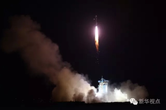 2016年8月16日1时40分,我国在酒泉卫星发射中心用长征二号丁运载火箭成功将世界首颗量子科学实验卫星(简称“量子卫星”)发射升空。 新华社记者 金立旺摄