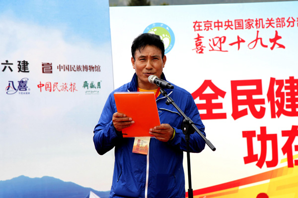 比赛主办方总指挥、国家民委直属机关工会主席曲扎致辞