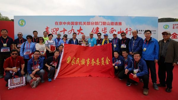 4月14日,“喜迎十九大,健步西山行”在京中央国家机关部分部门登山邀请赛在北京西山国家森林公园举办。本次比赛经中央国家机关工会联合会批准,由国家民委直属机关工会、人社部直属机关工会、中央国家机关户外健身运动协会主办,中国民族报社、中国民族博物馆承办,北京市海淀区人民政府、北京西山国家森林公园、江苏南通六建建设集团有限公司协办,北京中民艺苑文化传媒有限公司执行。
