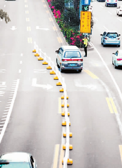 为解决相关交通通行问题,深圳交警专门组织对深南大道潮汐车道开展研究,并于2016年12月通过人工设置活动护栏的方式,进行了早高峰西往东方向潮汐车道试运行,深南大道的交通拥堵得到了明显的缓解。