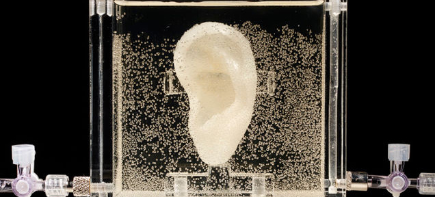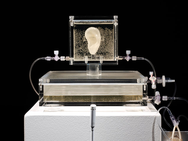 多亏有连接到电脑的麦克风系统,可将声音实时转化为神经脉冲,故而这只耳朵能听到声音。