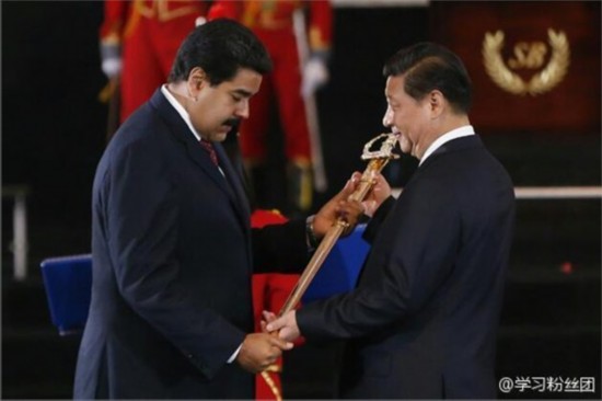 2014年7月20日,马杜罗向习近平授予象征自由、主权、独立的玻利瓦尔剑