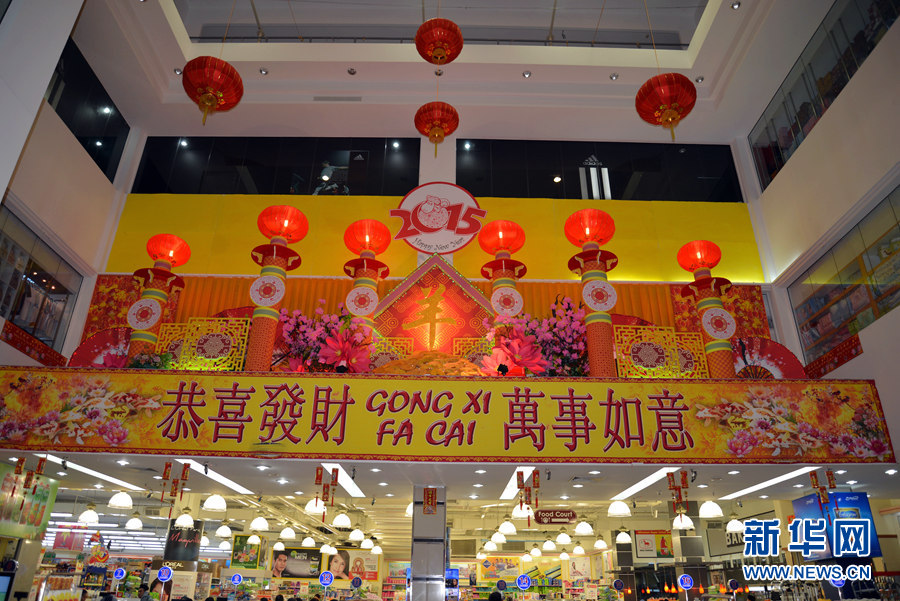 为迎接即将到来的中国农历羊年,文莱各大购物中心为顾客准备好了充足的节日吉祥物、传统生肖、灯笼和饰品,中国春节气氛渐浓。中国农历新年也是文莱的法定假日,全国放假一天。文莱居民喜欢在节日到到商场和超市选购中国年货。新华网记者 郑捷 摄