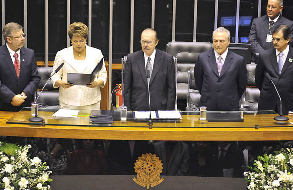 在巴西,总统宣誓就职通常要乘坐敞篷车经巴西利亚的部委大道抵达国会,沿途接受民众的欢呼和祝贺。参议长和众议长在国会迎接新任总统。随后,当着一共81名参议员和513名众议员的面,新总统宣读誓词:维护、保卫和履行宪法,遵守各项法律,推动巴西老百姓福祉,捍卫巴西国家统一、平等和独立。