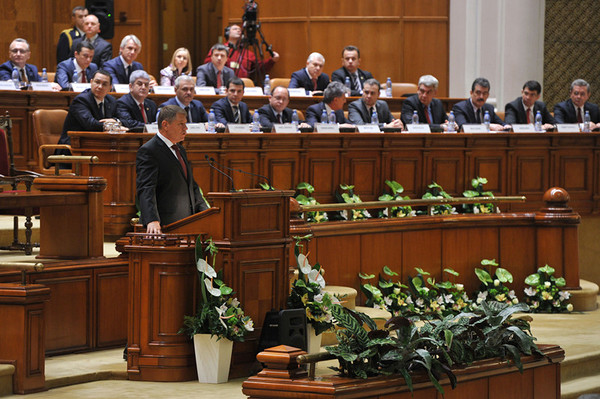 在罗马尼亚,罗总理和内阁成员上任都要向总统宣誓。而新总统上任则在议会宣誓,参加宣誓仪式的有参众两院议长及全体议员、总理及全体内阁成员、历任总统、宪法法院院长,外国驻罗使节等。总统宣誓时右手放在圣经和宪法上。誓言为:“我宣誓, 我将为人民的精神和物质繁荣奉献我全部的力量和智慧。我遵守宪法和国家各项法律,我将捍卫民主、公民基本权益和自由,我将捍卫罗马尼亚主权、独立、统一和领土完整。上帝佑我!”
