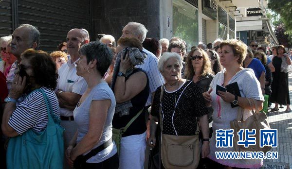 虽然希腊债务危机旷日持久,但很多对公投缺乏心理准备的希腊民众,在过去的周末纷纷赶到自动取款机(ATM)提现,雅典市内很多ATM前均排起了长队。很多市民希望能赶在已经预计出台的资本管制到来之前取出尽可能多的现金“以策安全”。但无论队伍有多长,希腊市民并没有表现出烦躁或者愤怒,他们大都默默安静地等候,或者是与萍水相逢的等候者窃窃私语以消磨时间。
