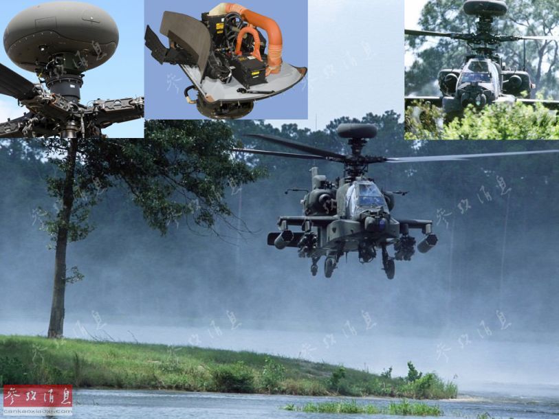 除两大观瞄系统外,1997年正式服役的AH-64D”长弓阿帕奇“配备了更先进的桅顶”长弓“毫米波雷达。借助该雷达,阿帕奇可隐蔽在障碍物后方,在树梢高度就能探测到8千米内的256个目标,并能在30秒内使用AGM-114L(发射后不管)导弹同时对其中的16个目标发动攻击。