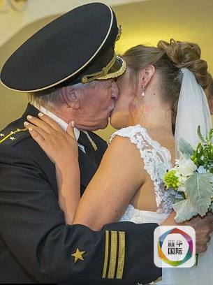 在随后公开的婚礼照片中,克拉斯科身着制服,深情拥吻比他小60岁的新婚妻子,而舍韦尔面带微笑,在一袭白婚纱的衬托下显得格外美丽。