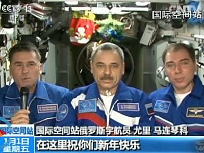 “亲爱的中国电视观众,我是尤里·马连琴科,我们是国际空间站俄罗斯舱的宇航员,在这里祝你们新年快乐。”