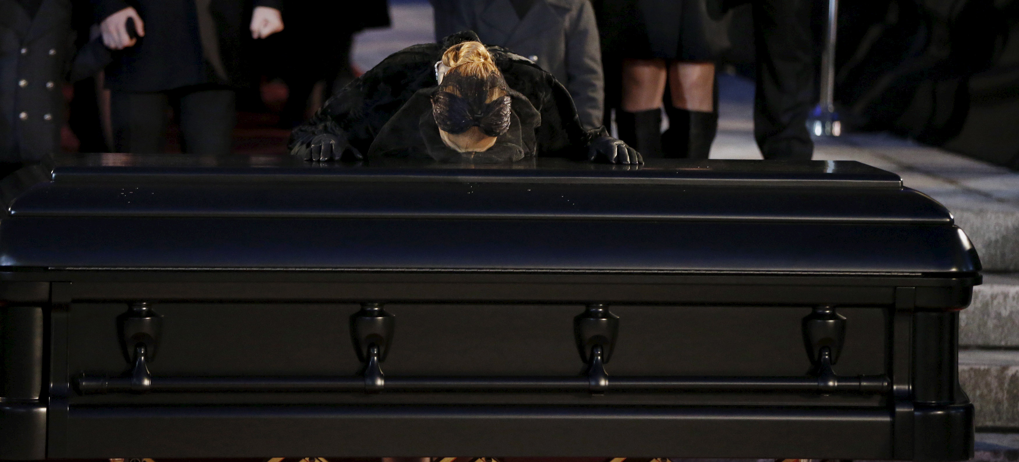 1月23日报道,加拿大歌坛天后席琳-迪翁(Celine Dion)22日替喉癌过世丈夫雷恩安杰利(Rene Angelil)举行告别式,由于席琳-迪翁在故乡音乐地位崇高,一手打理老婆事业的雷恩也获得相当多的尊敬,告别式近国葬等级,不只有电子媒体在线转播,更有不少民众涌入致哀,首相也到场送别,而席琳最后对丈夫的灵柩献上深情一吻温柔送别。