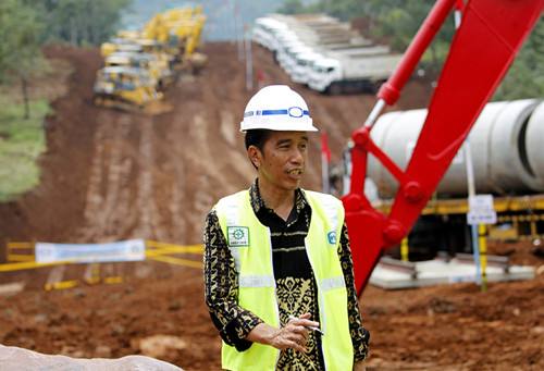 1月21日,在印尼西爪哇省瓦利尼,印尼总统佐科视察高铁工地。(图片来源:新华社/路透)