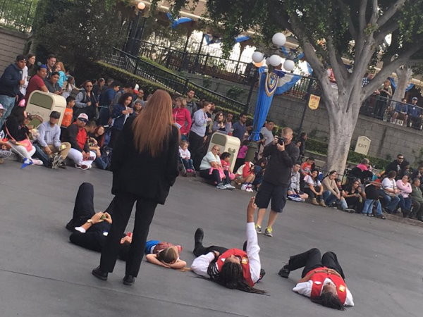 唐氏女孩迪士尼内躺马路 贴心员工一起躺下