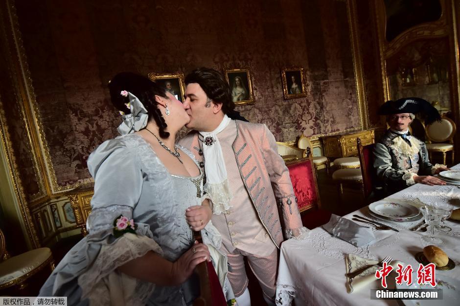 接吻的历史始于大约公元前3000年,古人们在膜拜众神时都要亲吻他们。古罗马帝国时期,不仅与朋友和家庭成员接吻,还要与商人和路人接吻,以此表示对他们的欢迎。中世纪这种见面礼不仅要受到人际关系的约束,还要受到社会阶层的约束。社会地位越低,亲吻距离脸部就越远。图为2016年2月14日,两个意大利人穿上了18世纪的服装亲吻庆祝情人节,在意大利,男人一定要娶当众亲吻的姑娘为妻。