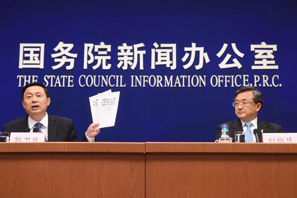 7月13日,国务院新闻办公室发表《中国坚持通过谈判解决中国与菲律宾在南海的有关争议》白皮书。新华社记者 陈晔华 摄